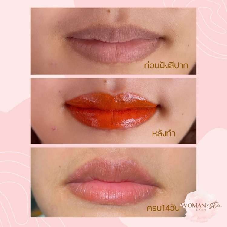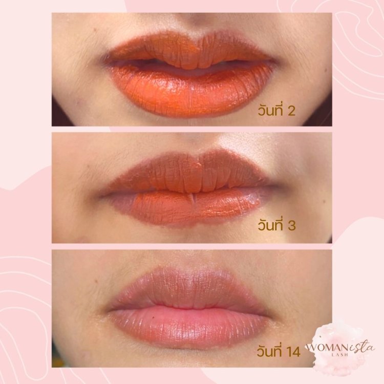 1. แผลจากการฝังสีปากจะค่อยๆ ลอกจนหมดภายในเวลาประมาณ 3-7 วัน และจะได้สีปากจริงที่อ่อนลงกว่าสีจากการฝังในตอนแรกเล็กน้อย