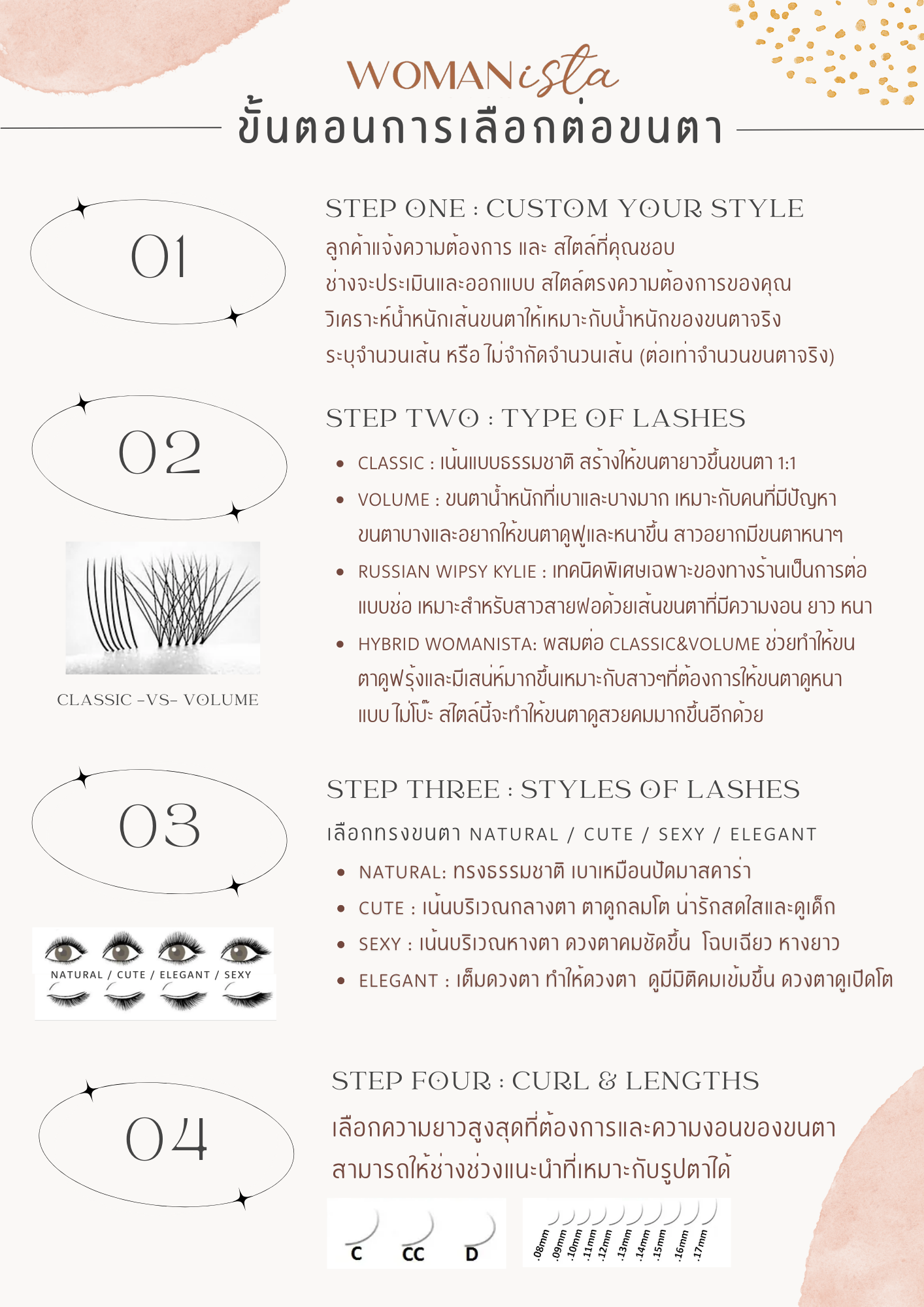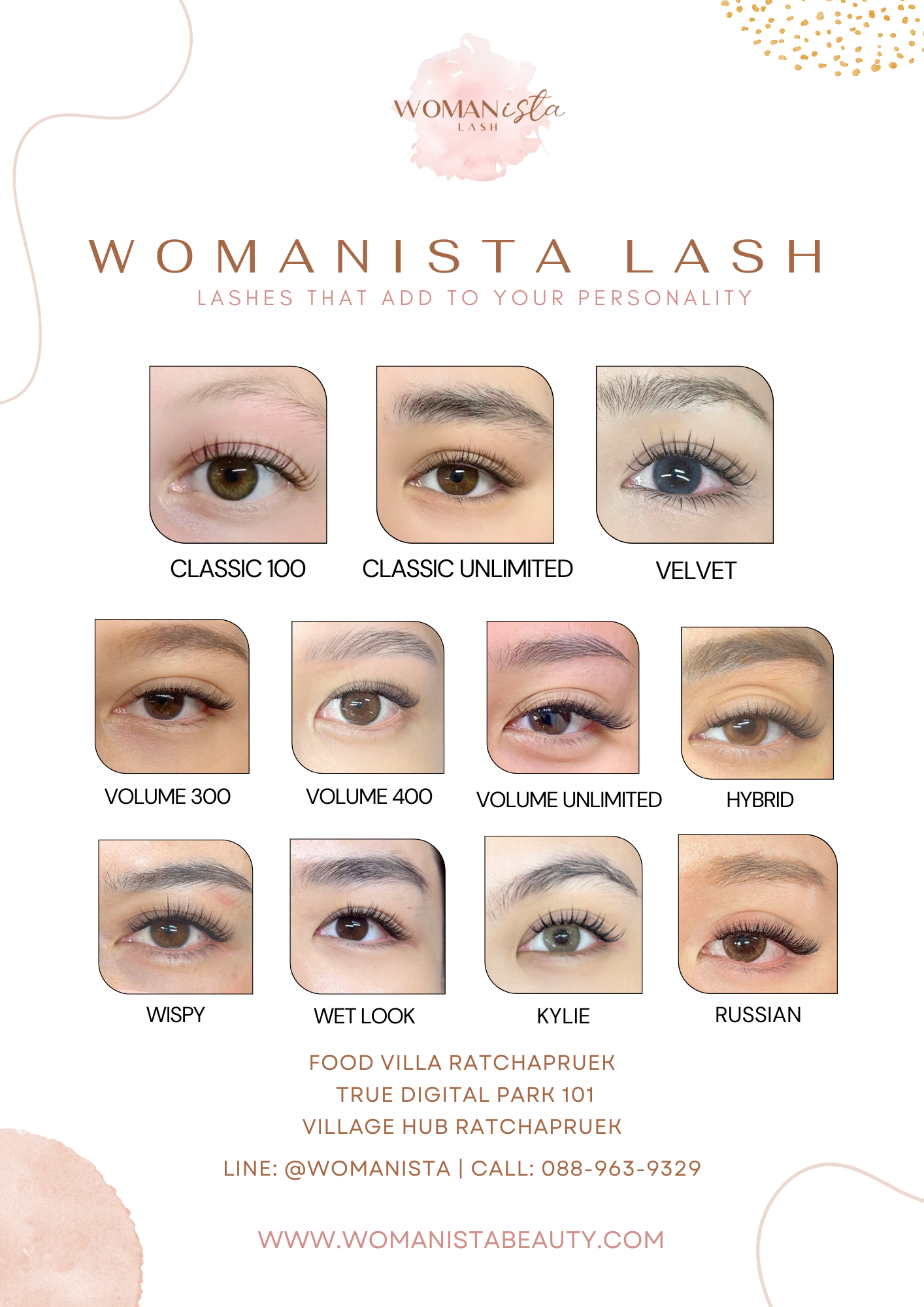Womanista Style การต่อขนตาเทคนิคพิเศษโดยเฉพาะของทางร้าน เป็นการผสมระหว่างการต่อแบบ Classic (เส้นต่อเส้น) กับ Volume (การต่อแบบช่อ) สำหรับคนที่ต้องการให้ตาดูคมชัด และโดดเด่นมากขึ้น