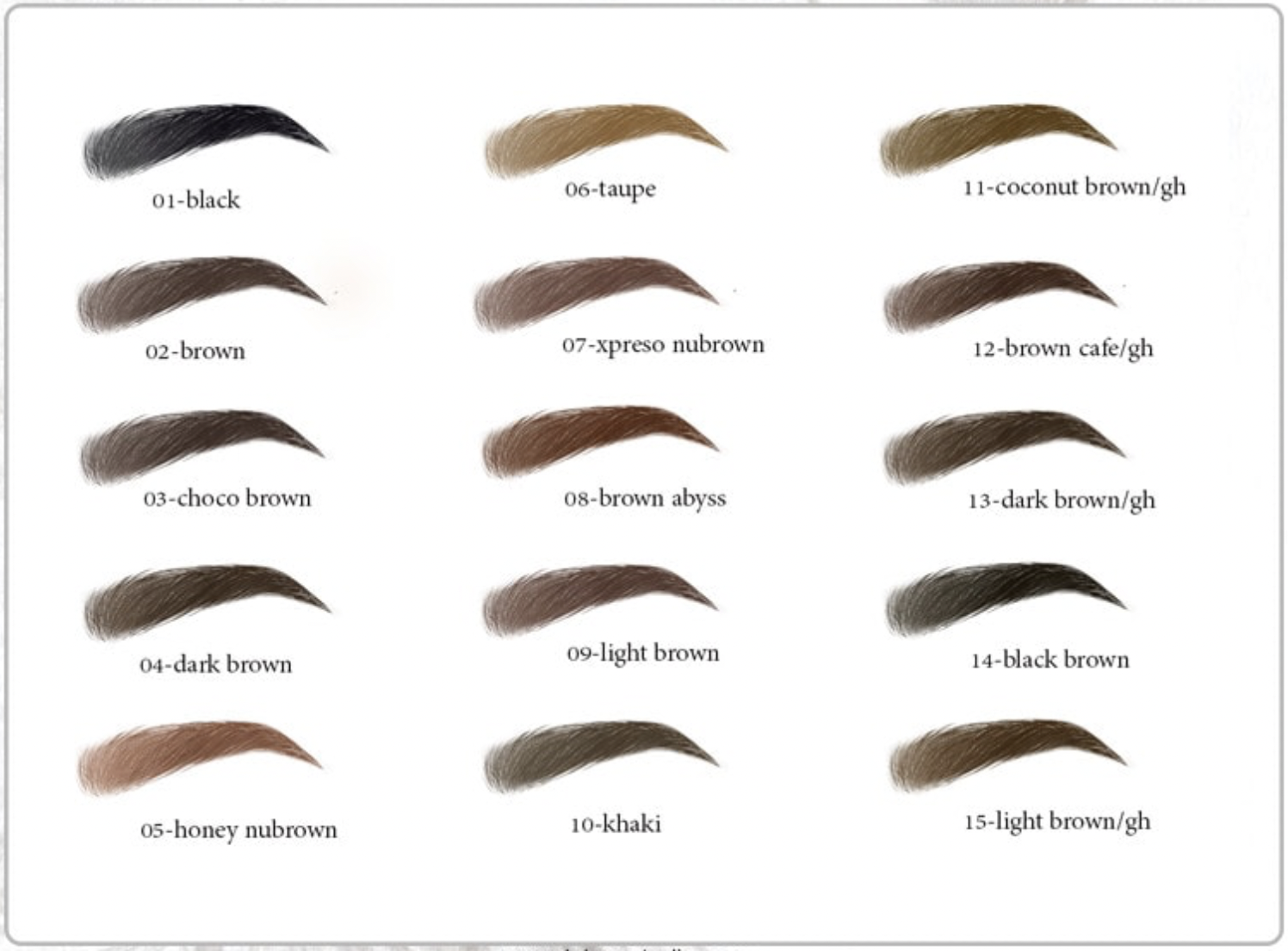2. เลือกสี โดยถ้าลูกค้าเลือกแบบลายเส้น ควรเลือกสีที่คล้ายคลึงกับขนคิ้วเราให้มากที่สุด แต่ถ้าหากเลือกแบบผสมฝุ่น สามารถเลือกสีอ่อน เข้ม ได้ตามความชอบ
